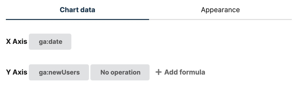 Next up, Chartbrew will try to select the right fields for you. In this case, we will need to change the Y-Axis operation from "count" to "No operation".