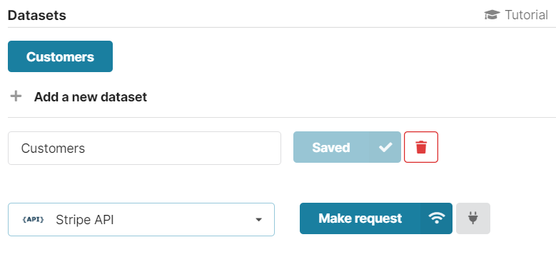 Click on the new dataset, connect it to Stripe and make the request to /subscriptions?status=active&limit=100