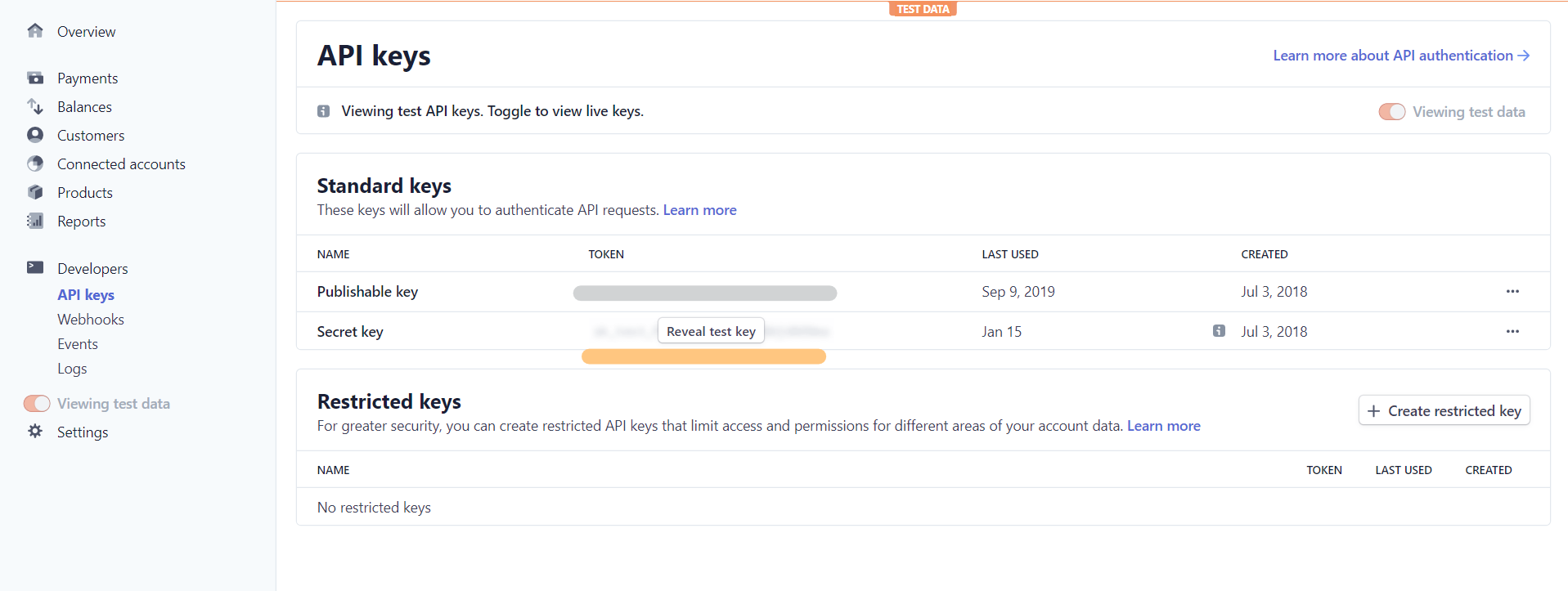 You can get the API key from your Stripe account dashboard. Refer to the screenshot below to see where you can find it: