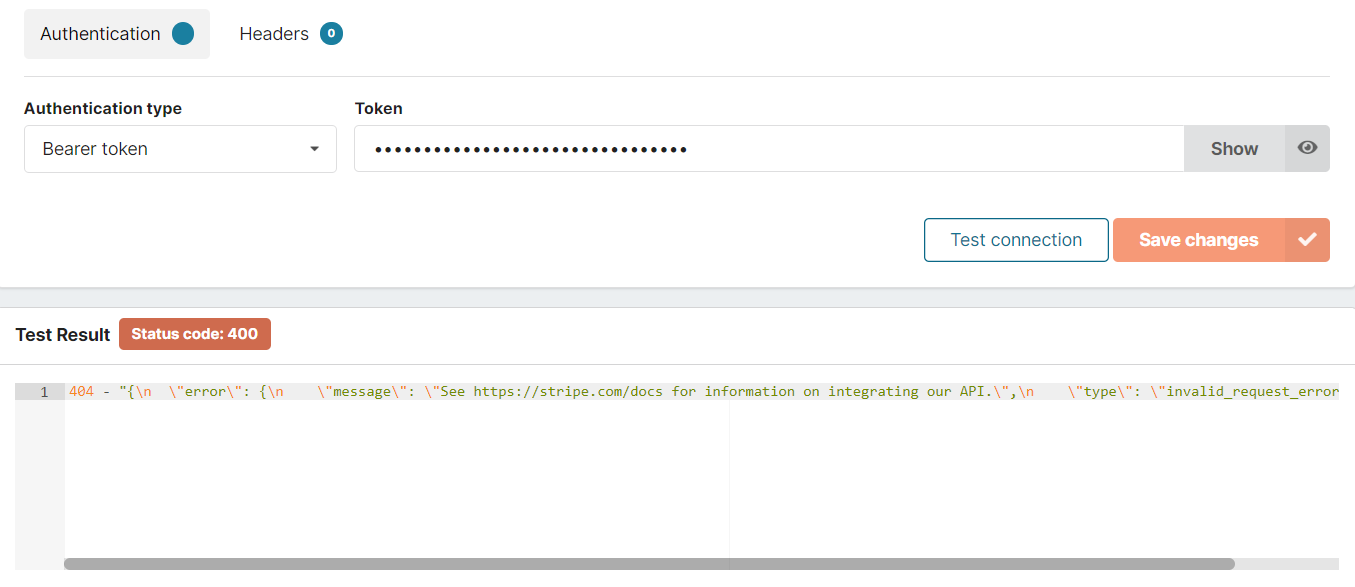Note that we selected the Stripe API connection from the dropdown. Let's click on Make a request to get our data from Stripe.